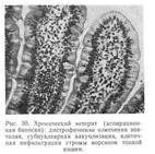 Патоморфология. Отмечаются изменения, во многом сходные с изменениями при остром энтерите, но они более глубокие, постоянные и в большинстве случаев необратимые. При длительном течении хронического энтерита вследствие гипотонии кишок наблюдаются расширение и удлинение тонкой кишки, ворсинки слизистой оболочки сглаживаются и уплощаются, эпителий ворсинок дистрофически изменяется. Слизистая оболочка часто истончается и вследствие выраженной атрофии теряет свою обычную бархатистость; она отечна и инфильтрирована лимфоидными клетками, нейтрофильными и эозинофильными гранулоцитами. Значительные дегенеративные изменения обнаруживаются в интрамуральных нервных узлах, наблюдаются также явления лимфангоита и фиброза лимфатических узлов. В тяжелых случаях возможно образование язв. Нередко имеются изменения в печени по типу хронического гепатита.
