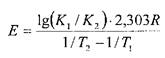 По двум константам скорости реакции К1 и К2 (при условии, что К1 > К2), соответственно установленным при двух различных температурах Т/ и Т2