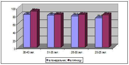 4) оценить показатели АД и ЧСС у работающих мужчин и женщин, взаимосвязь показателей с возрастом испытуемых и с началом и окончанием рабочего дня.