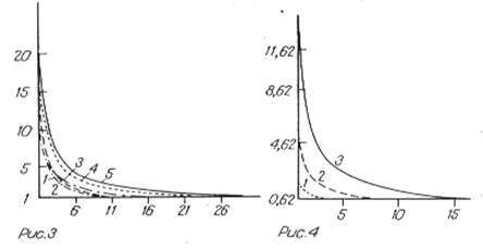 5 — МФА-1. Здесь и на рис. 2 по оси абсцисс τ (в с), по оси ординат — υ(в мл).Рис. 4. Кривые динамики скорости фильтрации сывороток плацентарной крови человека через мембраны «Мифил». Концентрация сывороток: 1 — 100 %. 2 —20 %. Э — 10%.