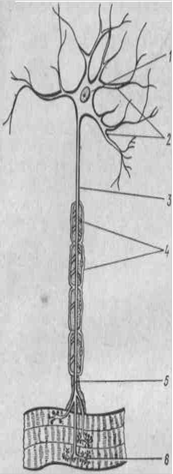 миелиновая оболочка; 5 - осевой цилиндр; 6 -