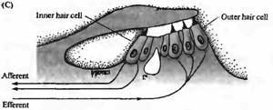 волосковых клеток, что отражается в паттерне активности волокон, контактирующих с наружными волосковыми клетками.