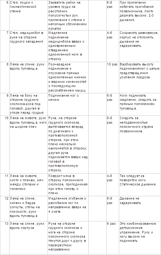 4. Примерный комплекс физических упражнений при сколиозе III степени