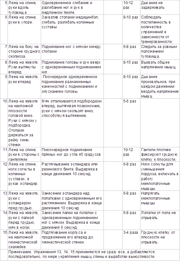 5. Примерный комплекс физических упражнений при сколиозе III степени