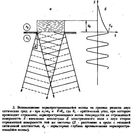 то происходит полное внутреннее отражение. В этом случае затухающая волна проникает на некоторое расстояние dp