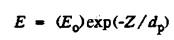 Глубина проникновения, определяемая как расстояние, при котором амплитуда электрического поля становится равной £ехр, описывается уравнением: