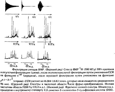 Несмотря на то что непрерывное фурье-преобразование может перевести полный спад свободной индукции в идеальный частотный спектр, в последнее время все чаще обсуждается возможность подбора наилучших способов преобразования временного сигнала в частотное представление. Это связано с тем, что в реальном эксперименте мы наблюдаем спад свободной индукции в течение конечного интервала времени Причем число повторений определяется тем значением отношения сигнал/шум, которое нужно получить. Таким образом, в силу конечности интервала Tag в нашем распоряжении имеется только эта дискретная информация и в результате фурье-преобразования получаем частотный спектр, который в точности соответствует этому усеченному спаду свободной индукции и лишь приближенно соответствует истинному спектру.