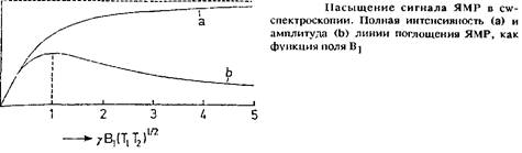 Если скорость поглощения энергии поля Bi сравнима по величине или превышает скорость спин-решеточной релаксации \1Т\, то амплитуда сигнала поглощения уменьшается, так как разность населенностей энергетических уровней N+