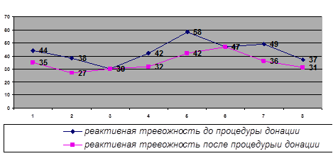 · Сама процедура донации повышает уровень тревожности, который зависит от активности донорства и имеет половые и возрастные особенности.