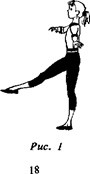 1. Шаг правой ногой вперед на носок. "И". Приставляя левую ногу к правой на носок сзади, наклонить туловище вправо левым плечом вперед, голову направо.