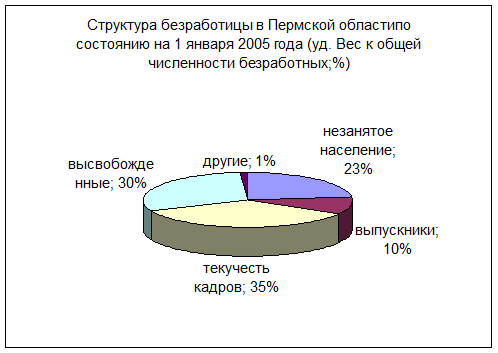 На 1 января 2005 года численность зарегистрированных безработных, состоящих на учете в органах службы занятости населения, составила в целом по области 18.2 тыс.чел., т.е. возросла по сравнению с началом года на 15.4%. По г. Перми численность безработных увеличилась на 0.4%, по городам области возросла на 9.0%, по сельским районам увеличилась на 27.8%, т.е. наиболее высокими темпами численность безработных возрастала в сельской местности.