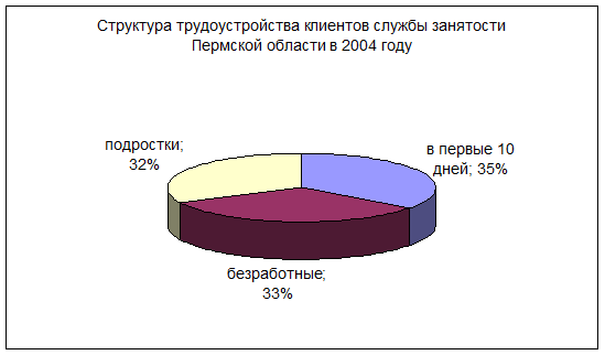 В целом итоги 2004 года показали, что напряженность на регистрируемом рынке труда области несколько возросла, причиной чего является сохранение низкого уровня жизни значительной части населения на фоне постоянного роста цен, в особенности коммунальных услуг. Основным контингентом клиентов ЦЗН по-прежнему являются низкоконкурентные слои населения, однако в отчетном году отмечено значительное увеличение доли лиц, возвращающихся в состав экономически активного населения после длительного периода незанятости. Сохраняется дифференциация территорий по уровню безработицы и напряженности на рынке труда. Основные усилия Департамента ФГСЗН по Пермской области и территориальных ЦЗН в 2004 году были направлены на повышение эффективности взаимодействия с работодателями но программам трудоустройства безработных и незанятого населения, развитие программ повышения конкурентоспособности населения на рынке труда и привлечение дополнительных источников финансирования мероприятий по содействию занятости населения.
