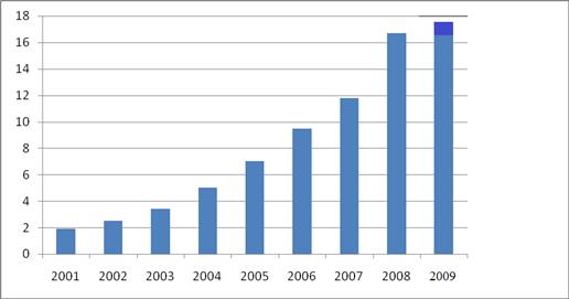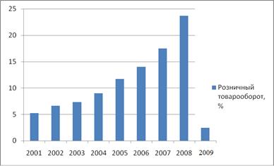 Рис. 2.3 Розничный товарооборот Республики Беларусь, 2001-2009 г