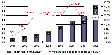 Касаемо инвестиций в основные фонды, даже в условиях проблем с привлечением внешнего финансирования прирост инвестиций в основной капитал превышает 15% в начале 2009 г.