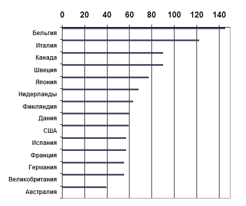 Рис. 2. Долг государственного сектора в %-ах к ВВП, 1994г.[9 c.396].