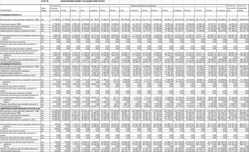 Бюджет консолідує облікові дані по обраному напрямку або об'єктові бізнесу. Бюджет планується виходячи з норм, прийнятих у цьому напрямку або об'єкті, з обліком їхнього попереднього функціонування.