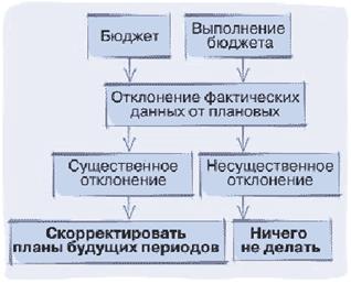 Ключовим елементом системи контролю є «відхилення». При цьому передбачається використання методу виключення, відповідно до якого менеджер зосереджує увагу тільки на значимих відхиленнях і не звертає уваги на показники, що виконуються задовільно. Загальна схема бюджетного контролю по відхиленнях представлена на рис.2.1.