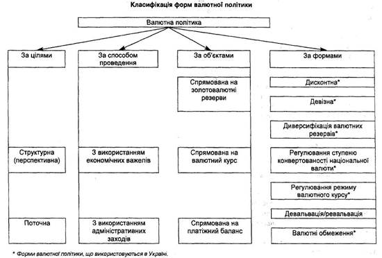 Враховуючи складну структуру валютної політики та різноманітність її видів, необхідно чітко визначити, які саме форми повинні використовуватися в Україні, а також які державні органи мають впроваджувати ті чи інші заходи валютного регулювання і контролю.