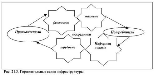 Горизонтальная инфраструктура бизнеса представляет собой постоянно воспроизводимый процесс движения финансовых и материальных ресурсов, выступающих объектами сделок между контрагентами.