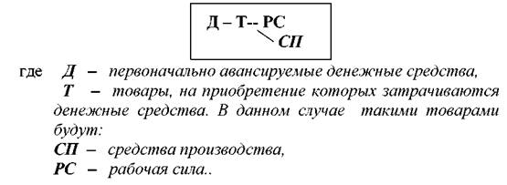 формирование условий производства. Для того, чтобы фирма могла начать производственную деятельность, нужно прежде всего приобрести средства производства и нанять работников. Схематично эту стадию можно представить следующим образом: