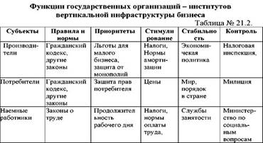 Государственные организации как институты вертикальной инфраструктуры современного бизнеса выполняют следующие функции: