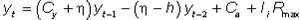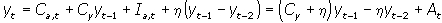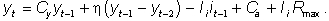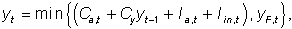где Iin,t = max{-D; (yt-1 - yt-2)}, если yt < yF, и Iin,t = yt - Ct - Ia,t при yt yF.