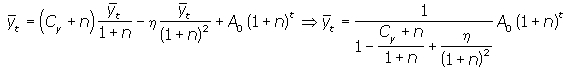Включим в модель взаимодействия мультипликатора и акселератора еще один фактор - рост населения. Пусть в результате роста населения автономный спрос ежегодно увеличивается в (1 + n) раз. Тогда уравнение (8) принимает вид