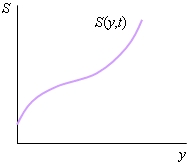 В среднесрочном периоде объемы сбережений и инвестиций зависят также от времени: S = S(y,t), I = I(y,t). Если на протяжении нескольких лет экономика растет, то объем сбережений увеличивается при любом уровне дохода. На графике это отображается сдвигом кривой S = S(y,t) вверх. График функции инвестиций в периоды продолжительного роста экономической активности, наоборот, смещается вниз. Это объясняется тем, что за время продолжительного экономического роста капиталовооруженность труда приближается к своему оптимальному при данной технологии значению.
