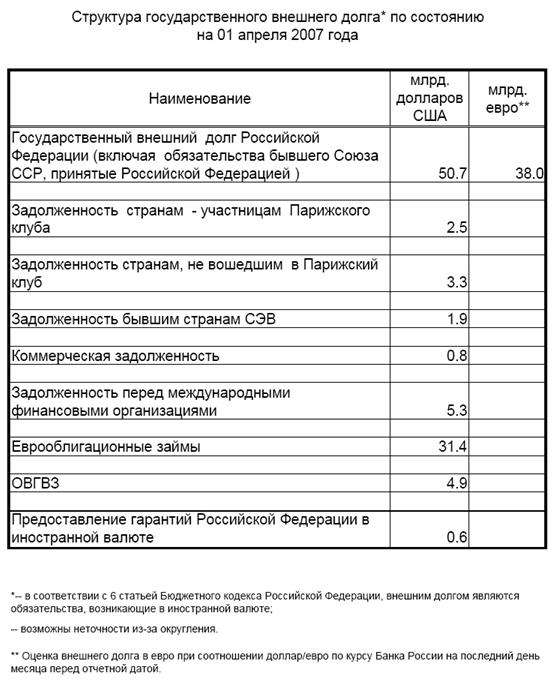 Таким образом, цель моей курсовой работы - показать проблематику внешней задолженности России, ее зависимость от этого долга и перспективы развития ситуации.