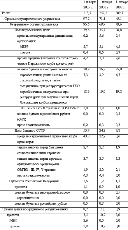 Причинами образования внешнего долга России послужили как ее займы после 1991г., так и задолжность СССР, которую взяла на себя правительство России.