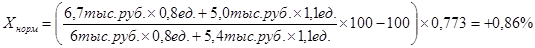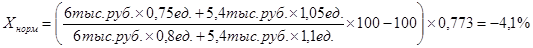 - доля затрат на материалы, на которые изменились нормы в себе стоимости продукции, %.