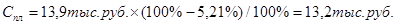 = 13,9 тыс. руб. / 74 тыс. ед. = 0,188 руб.