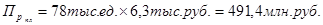 = 13,2 тыс. руб. / 78 тыс. ед. = 0,169 руб.