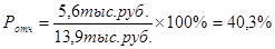 = 414,4 млн. руб. / 950 млн. руб. × 100 % = 43,6 %