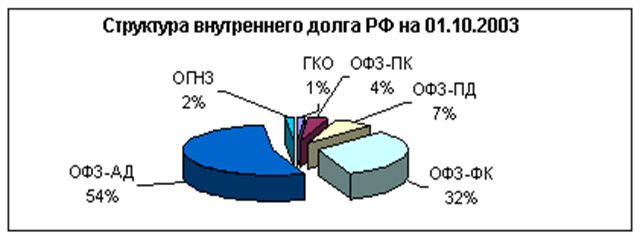 России в соответствии с методологией, применяемой Минфином РФ, по состоянию на 01.10.2003 г. составил 682,154 млрд. руб., что на 4% больше, чем по состоянию на 01.01.2003 г.