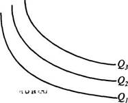 Так, в нашем примере нарастающее расширение книгоиздания в направлении от альтернативы (А) к (Д) потребует всё большей переквалификации изготовителей станков в книгоиздателей, всё более трудного и затратного "тискивания" сырья, техники и технологии станкостроения в полиграфическую отрасль. Ресурсоёмкостъ дополнительных книг растёт. В результате число "снятых с производства" станков в расчёте на каждую дополнительно произведённую единицу книг увеличивается. На линии ГПВ (рис.2.13) это проявляется в закруглённости её концов. Если бы ресурсы были полностью взаимозаменяемы, вменённые издержки оставались бы постоянными, а линия ГПВ была бы прямой.
