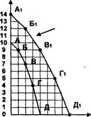 Рис.6. Кривая производственных возможностей в условиях экономического роста