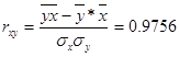 Значит, говорит о высокой степени тесноты корреляционной связи между «x» и «y».