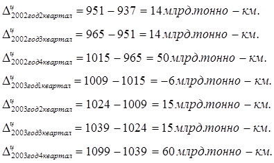 Хср2002= (937+951+965+1015) /4=967 млрд. тонно км в квартал