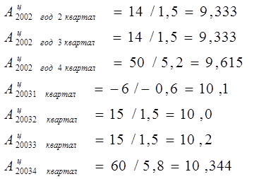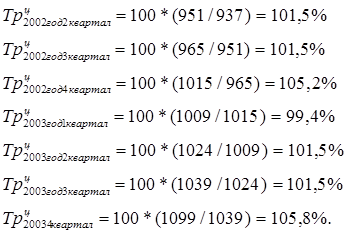 Хср2003= (1009+1024+1039+1099) /4=1042,75 млрд. тонно км в квартал
