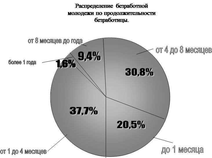 Так же для количественного измерения безработицы используется такой показатель, как продолжительность безработицы - характеризуется средним периодом времени перерыва в работе. Длительная безработица может поставить семью на грань нищеты, поэтому государственная политика, прежде всего, должна быть адресной и направлена именно на уменьшение категории безработных.