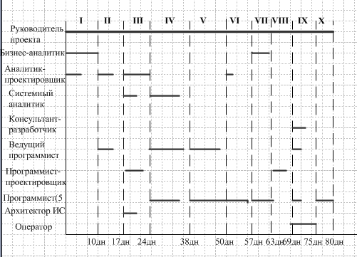 Разрабатываемая система будет создаваться коллективом разработчиков, куда войдут бизнес-аналитик, 5 программистов, архитектор информационной системы, аналитик-проектировщик, консультант-разработчик ИС, системный аналитик, программист-проектировщик, оператор и руководитель проекта. Для продвижения товара на рынке будет принят на работу дилер (с зарплатой 1% с продаж) и оператор множительной техники (зарплата, которого зависит от числа копий).