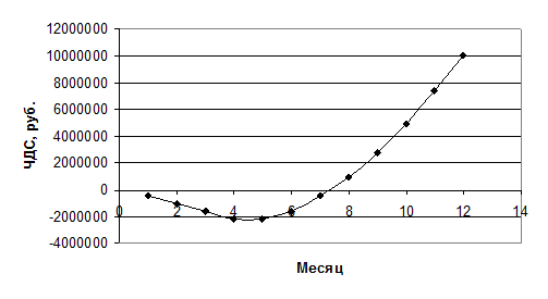 г) финансовый риск возникает при больших инвестиционных затратах, при длительном сроке окупаемости, инфляции, колебании валютных курсов. Для предупреждения этого риска срок окупаемости проекта должен быть меньше нормативного срока (1 год). Срок окупаемости рассматриваемого проекта равен 8 месяцам.