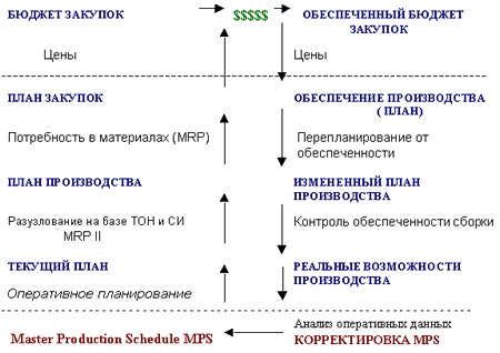 включает планирование потребностей, конфигуратор продукции, управление проектом, управление серийным производством и производством по отдельным заказам, управление цепочкой поставок на уровне корпоративного производства. Подсистема "Производство" спроектирована для работы со всеми типами стратегий управления производством. Более того, система BAAN обладает гибкостью, позволяющей изменять стратегию в течение жизненного цикла проекта. Подсистема "Производство" предоставляет также возможность изменения положения точки привязки заказа клиента (CODP), которая определяет степень влияния заказа клиента на производственный цикл. Ядром подсистемы "Производство" является модуль "Основной производственный план-график" (MPS). Он спроектирован для того, чтобы помочь вам в каждодневном управлении производством наряду с проведением долгосрочного планирования и принятием решений. Подсистема позволяет реализовать все типы производственной среды и их сочетания.