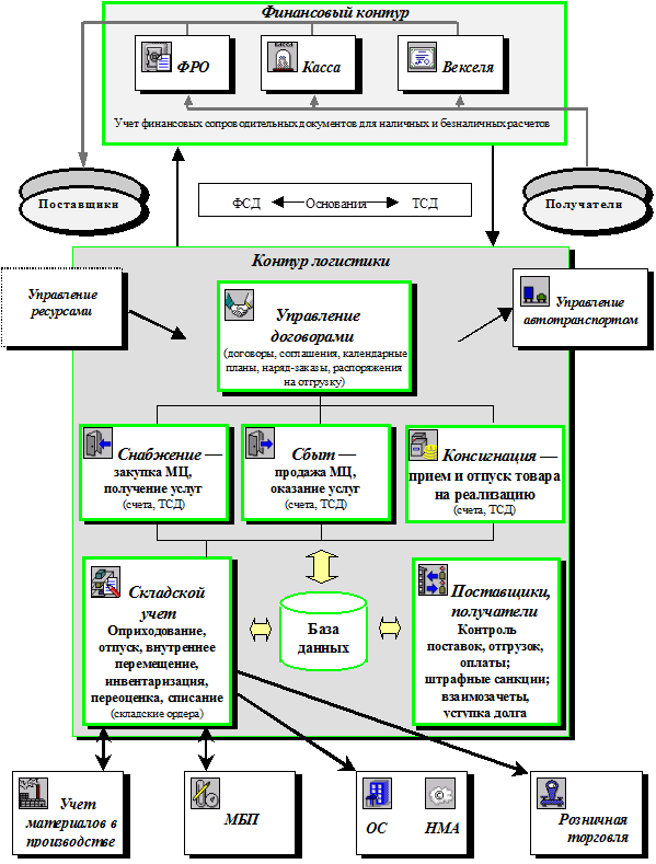производит управление продажами и закупками, контрактами, материальными запасами и хранением, многоуровневое управление партиями и отслеживание движения партий. Кроме этого, модуль предлагает всестороннее управление внешней логистикой и транспортировкой, обеспечивает оптимизацию маршрутов, управление заказами на транспортировку и поддержку транспортных работ, поддержку общего складирования и управление упаковочными работами. Подсистема "Сбыт, снабжение, склады" разработана для того, чтобы взять на себя заботу о повседневном материально-техническом обеспечении производителей и оптовиков. Подсистема полностью интегрирована со всеми продуктами семейства BAAN, включая "Производство", "Проект", "Сервис", "Транспорт" и "Финансы", что предоставляет вашей компании всеобъемлющую, доступную и единую информационную систему управления. Эта полностью интегрированная система материально-технического снабжения включает в себя электронный обмен данными и связь с планированием потребностей распределения.