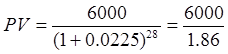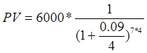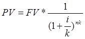 Используя формулу функции текущей стоимости единицы при начислении процентов несколько раз в течение года: