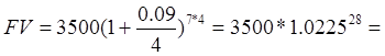 Через 7 лет для приобретения участка земли необходимо иметь 6000$. Достаточно ли положить в банк 3500$, если он начисляет процент ежеквартально по ставке 9% годовых?