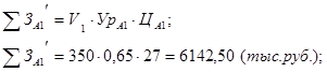 Рассчитаем затраты на менее качественное сырьё А для производства продукции первого вида: