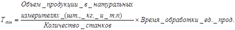 Определим минимальное время работы, за которое полученное количество продукции могло быть произведено, по нижеприведённой формуле:
