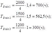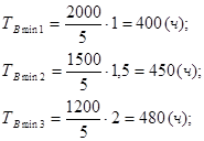 Определим минимальное время работы для станков вида А по формуле (2) сначала для продукции 1, потом для продукции 2 и для продукции 3.